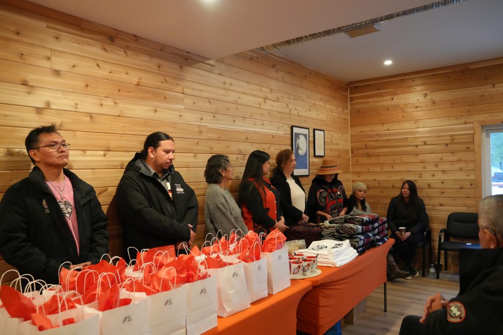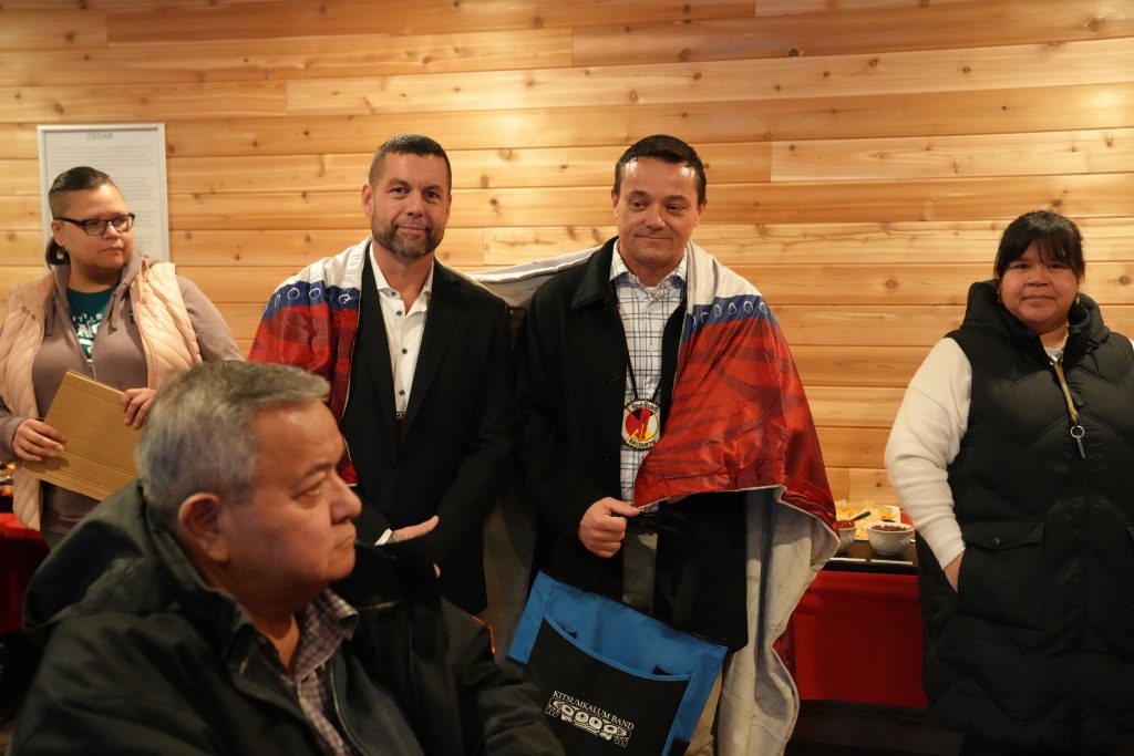 Charlene called on her Kitsumkalum staff members Elizabeth and Barb to blanket Kris Cudmore, Business Development Founder, Red Road Recovery, and Scott Tremblett, Executive Director/CEO Founder, Red Road Recovery. “Thank you for believing in our dream,” said Charlene. “Together we can build more mountains.”
